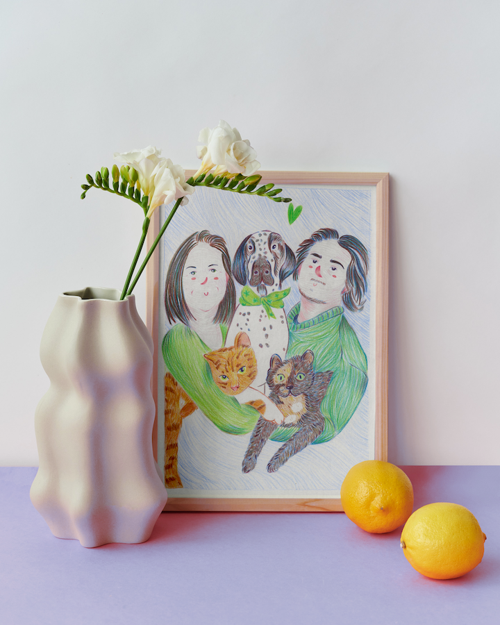 ✨ Les portraits de famille sont réalisés dans le même style à partir d'une ou plusieurs photos envoyées, pour que chaque personne soit représentée à son avantage. Vous pouvez partager vos préférences pour les couleurs utilisées si vous le souhaitez ou préciser quelques détails à ajouter (un motif, un vêtement, des prénoms), tout est personnalisable.